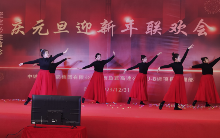 (国铁路网、交通运输新技术网特约通讯员张光林 苏玉伟)12月31日下午,中铁二十三局集团公司鱼宜高速公路项目部举行辞旧迎新联欢会,全体员工欢聚一堂载歌载舞庆祝过去一年取得的成绩,满怀豪情迎接新的一年到来。联欢会特邀请了建设、设计、监理单位和驻地政府有关部门的代表一同与员工们分享了这一美好的时刻。