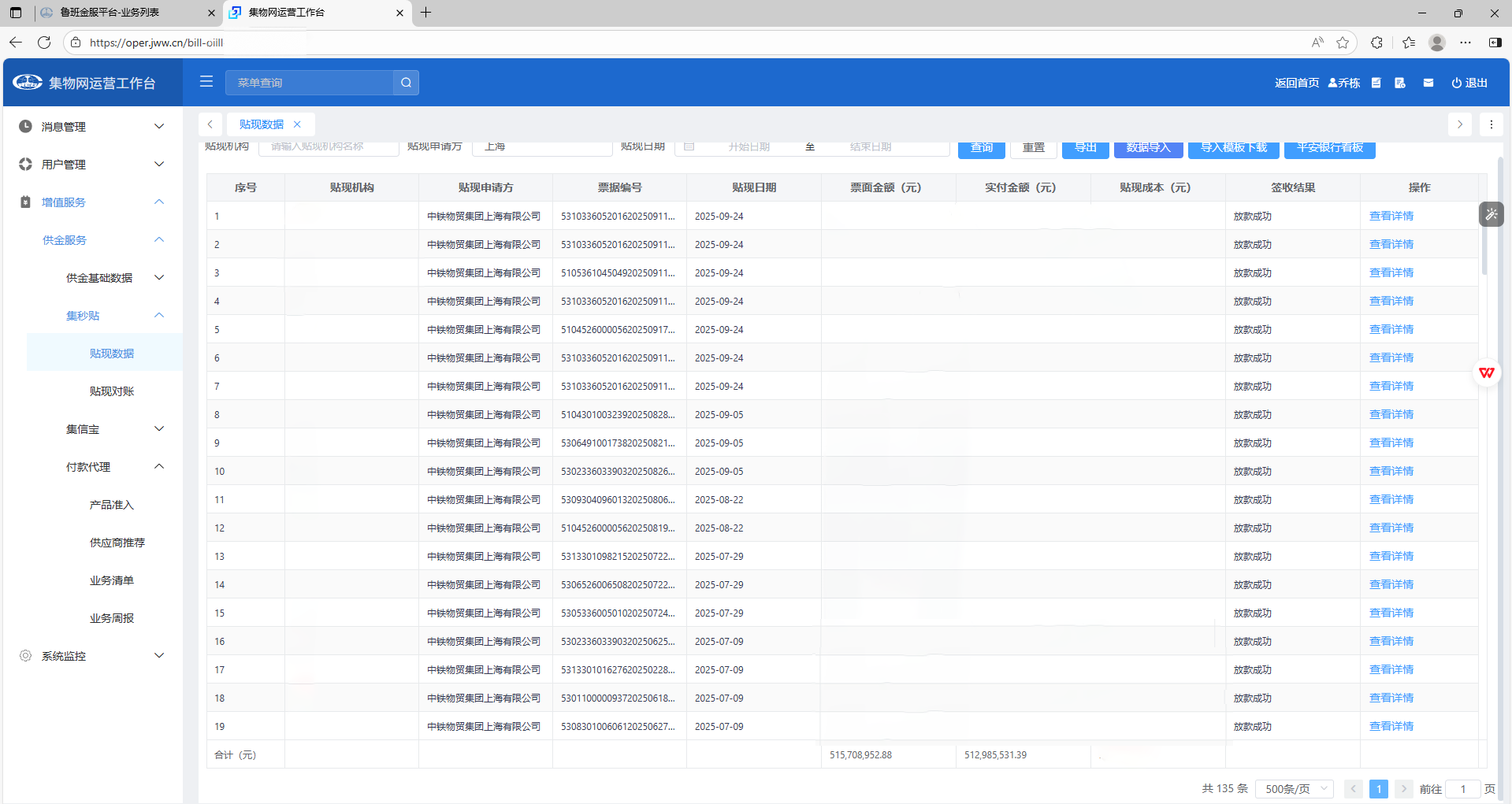 伴随着最新一批银承贴现成功放款,中铁物贸上海公司在“集秒贴”平台累计办理银承贴现业务额突破5亿元。