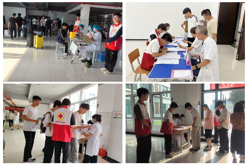 新生入学体检是报到流程中的重要环节。当天,该校红十字协会在卫生所医护人员的指挥下积极行动,为体检工作高效有序开展提供助力。身着红十字志愿服的同学们穿梭在体检现场各个环节:有的在体检台前协助医护人员核对新生信息、引导新生有序排队,避免出现拥挤混乱情况;有的在候检区域耐心为新生答疑解惑,详细指引他们前往指定体检地点,帮助新生快速熟悉体检流程。医护人员则专注地为新生进行各项检查,社团志愿者与医护人员的默契配合,让整个体检流程高效顺畅,也让新生们切实感受到了学校细致入微的关怀。