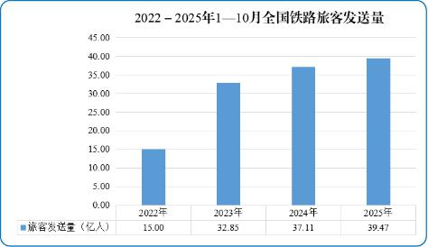 图1 2022—2025年1—10月全国铁路旅客发送量