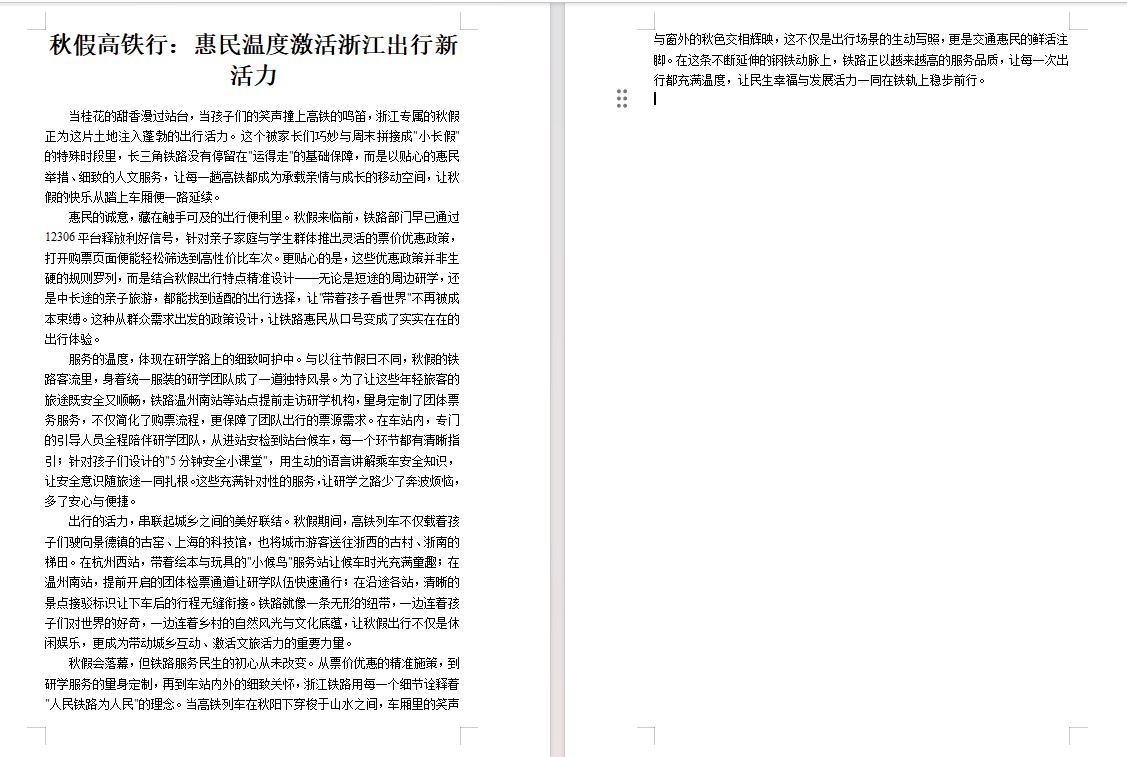 浙江秋假里,长三角铁路以亲子票价优惠、研学专属服务,让高铁成为承载亲情的移动空间,串联城乡美景,用细致关怀为出行注入温暖与活力。2025-11-17 发布人:边琪埕 -