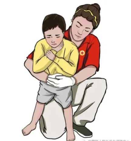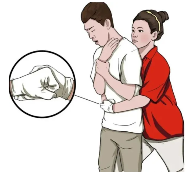 海姆立克急救法:异物卡喉时采用的急救办法,即用外力冲击腹部和膈肌下的软组织,产生向上压力压迫两肺下部,驱使肺部残留空气形成气流,将阻塞气道的异物祛除。