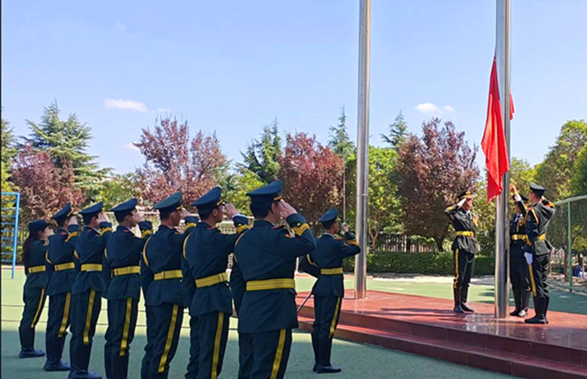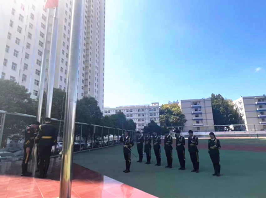 ——举行纪念“九一八”事变93周年降半旗默哀活动。9月18日,该校护校队在田径场升旗台举行庄严的降半旗默哀活动。活动开始前,护校队大队长向队员们介绍了“九一八”事变的全过程并阐述了举行活动的目的和意义。随后,伴随着雄壮的国歌,鲜艳的五星红旗迎风招展,冉冉升起,国旗升至旗杆顶端短暂停留后又缓缓降至旗杆中间。护校队员脱帽肃立,为在战争中牺牲的革命先烈和死难同胞集体默哀三分钟。