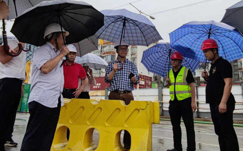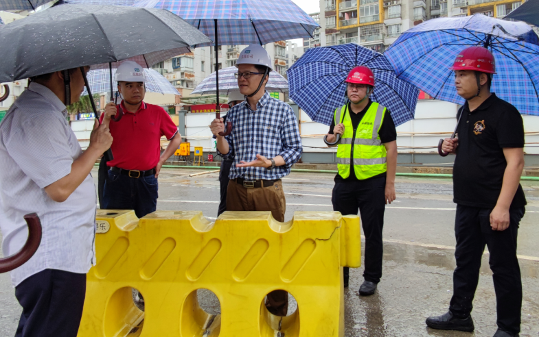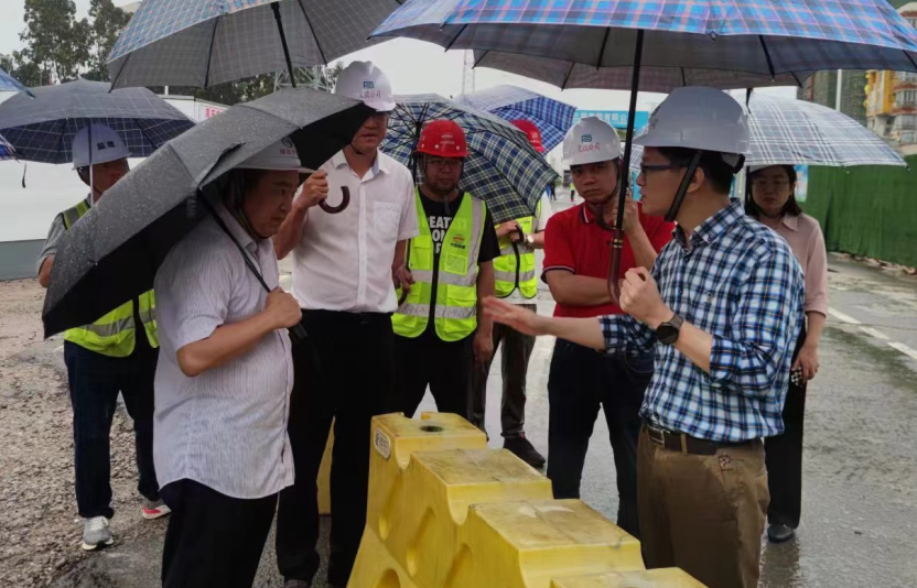 三乐路(北滘立交至碧桂路段)快速路改造工程穿越既有G105国道跨线桥和佛山地铁3号线,是佛山市重要交通枢纽工程,倍受市、区两级领导的重视,特别是工期调整提前后,距离道路开通还不到半年时间。工期紧、任务重,施工单位压力相当大。在这个关键时期,地方政府领导亲临现场检查指导并帮助解决施工难题,给员工们增添了极大的信息和无穷的力量。黄志捷一行冒着大雨来到施工现场,在项目经理张晓宇以及建设、监理单位负责人的陪同下,实地查看了项目建设情况,详细询问了施工进度、安全质量管控以及剩余工程组织安排等情况,针对工程施工中需要地方帮助协调解决的问题,要求陪同检查的区相关部门注重加强与施工单位的沟通和联系,及时了解掌握出现问题的原因,有针对性地与工程所在地的街道、居民和相关单位进行协商,尽快给予解决,为施工生产创造良好的外部环境。针对工期短、任务重的实际,要求施工单位一是要时刻把好安全质量关,面对工程周边既有道路多、车流量大,环境复杂,既要始终把安全生产放在第一位,又要按照工艺标准抓好每个环节的质量,不能因为抢工期而放松安全和质量管理,确保安全质量无任何事故;二是要切实抓好节点保证工期,随着雨季到来,施工难度加大,有效施工日期减少,必须克服一切困难,采取多种有效措施提高工作效率,加快工程进度,确保“6.30”主体工程竣工和“9.30”达到通车标准两个节点工期的实现。尤其是后期交通导改,要尽量缩减导改次数,压缩施工时间,缓解交通压力,早日还路于民。三是要保持良好的施工现场环境,三乐路项目紧邻美的公司总部,处于顺德区的主要干线上,要注意保持好周边厂区、社区和居民区的工作和生活环境,保证工程平行和交叉既有道路交通通畅、干净整洁,为顺德区环境整体提升做出贡献。在现场检查期间,还针对施工现场的实际,从现场管理、施工组织和提速增效上提出了许多好的意见和建议。