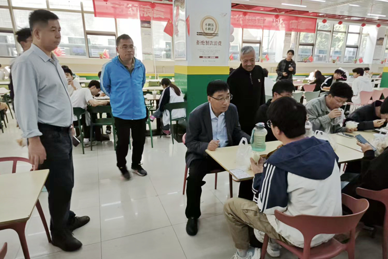 9月30日上午,校长韩小卫带领党政办、后勤安保处、学生处等部门负责人对临渭校区进行了重点检查。检查组深入办公楼、教学楼、实训楼、餐饮中心等关键场所。在教学楼,检查组走进班级与学生亲切交流,了解其学习生活状况,听取对校园安全的意见建议,并叮嘱同学们假期注意安全,合理安排生活。在餐饮中心,韩小卫与用餐学生交谈,关心饭菜质量、价格及就餐环境,要求严把食品安全关,确保师生吃得放心、舒心。在实训楼焊接实训室,韩小卫详细查看了设备运行状态与安全防护措施,听取了安全管理汇报,并就规范操作、压实安全责任提出明确要求,强调必须时刻绷紧安全弦,确保实训教学绝对安全。