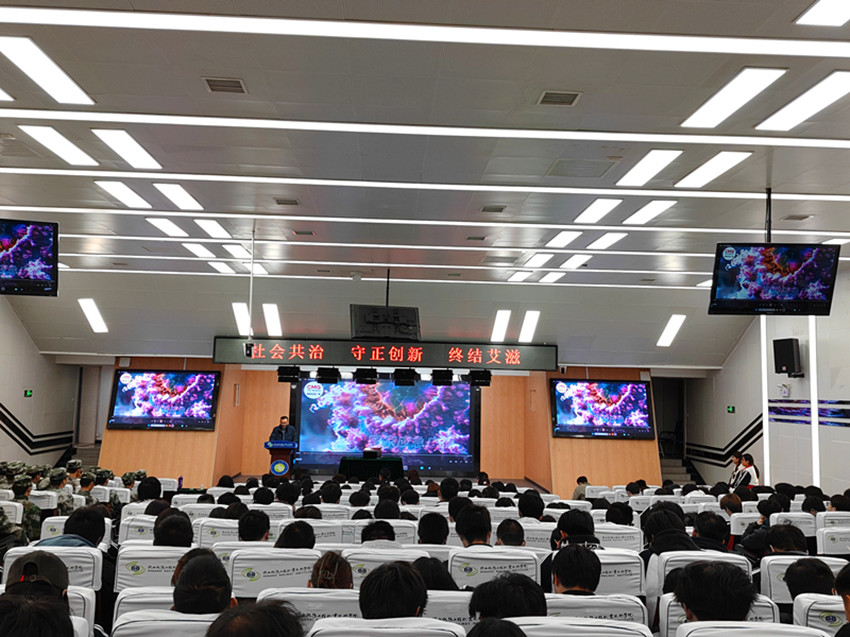在高新校区主会场,渭南市疾病预防控制中心艾滋病防治科科长许雷涛应邀为三百余名师生作“筑牢青春防线”主题讲座。讲座围绕“认识、传播、预防、检测治疗、消除歧视”的逻辑主线,系统讲解了“艾梅乙”的防治知识。