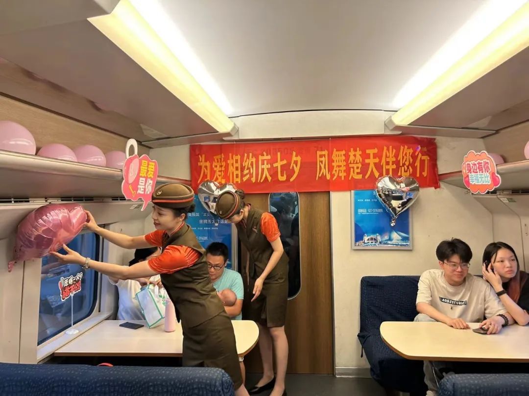 七夕鹊桥争渡处,人间天上两情痴。在奔赴与爱人相见的旅途中,旅客们很高兴在高铁上感受到了七夕传统文化的浪漫,感受到了铁路部门的真心和用心。七夕文化之旅只是铁路部门用爱心、耐心、贴心服务的一个缩影,整个暑运期间,铁路部门精准实施“一日一图”,根据实际客流情况,动态调整运力供给,提升客运能力,满足旅客出行需求,让旅客的旅途更舒心、顺心、安心,彰显铁路部门“人民铁路为人民”的初心。