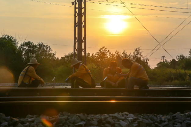 铁路人用责任和热爱锤炼过硬本领。安稳行车的背后,是有人在负重前行。旅客们在舒适的车厢内欣赏窗外美景的时候,铁路人在烈日下使用沉重的机械进行维护作业,他们头戴草帽、肩搭毛巾,推着80多斤重的钢轨探伤仪缓慢前行,细致入微地查找毫米级安全隐患。铁路人个个眼神坚定,不怕麻烦,不怕酷暑,用热爱的态度不断锤炼自己的过硬本领,蹲下、站起、俯身、低头、猫腰、侧身、探身、前行……动作千百次重复为钢轨“看病”、查找隐患,换来行车安全稳定。列车经过时刮起来的风是铁路人能感受到的唯一凉爽,他们立岗接车,看到列车内旅客的笑脸,自己挂满汗珠的面孔上也绽开了笑容。