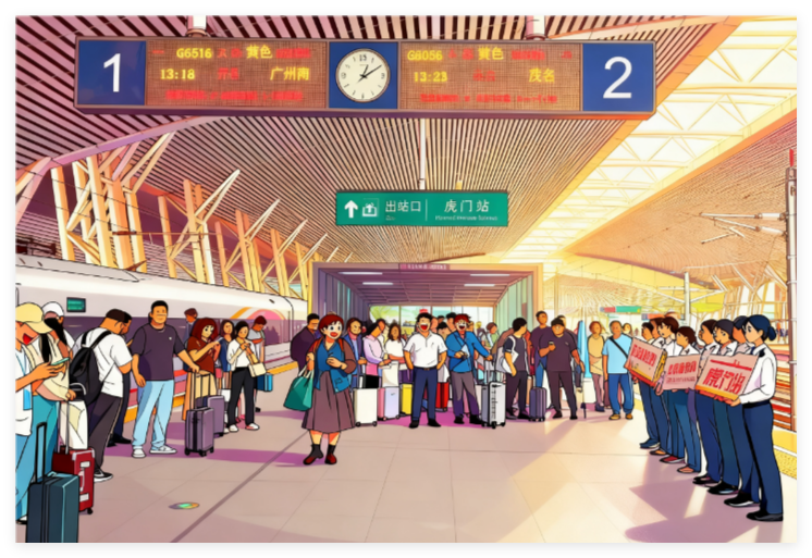 未来可期:枢纽担当助力湾区腾飞。虎门站作为广深港高铁线上客流最大的中间站,其持续发挥区位优势、服务地方发展的责任重大。当前,东莞正全力打造大湾区重要节点城市,虎门站既是东莞融入大湾区发展的“桥头堡”,也是铁路服务地方经济社会发展的 “主力军”,虎门站必将在优化服务流程、提升承载能力、深化协同联动等方面持续发力,进一步释放枢纽效能,为大湾区人员往来、产业协同、文化交流提供更坚实的交通保障。2025-11-07 发布人:周运华 -