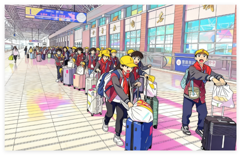 通过按时集合、排队安检、对号入座、安静乘车等流程,学生群体能够约束自己的言行,理解规则的内涵,明白自由的边界;离开父母呵护,独立自主乘车的过程,也是管理自我物品、承担后续结果的一次经历,若乘车时马虎大意,就会发生物品遗忘、损坏等情况,这也会加深学生们对“保管好个人物品”这句话的认识,从而管理好自己的人生;研学出行的过程,学生们还会被赋予不同的角色,如小组长、宣传员等,这些看似简单的职务,可以大大锻炼学生们的领导能力、沟通能力、服务意识,激发他们对团队的使命感与荣誉感,为承担更大人生挑战,打下坚实基础。2025-10-23 发布人:周运华 -